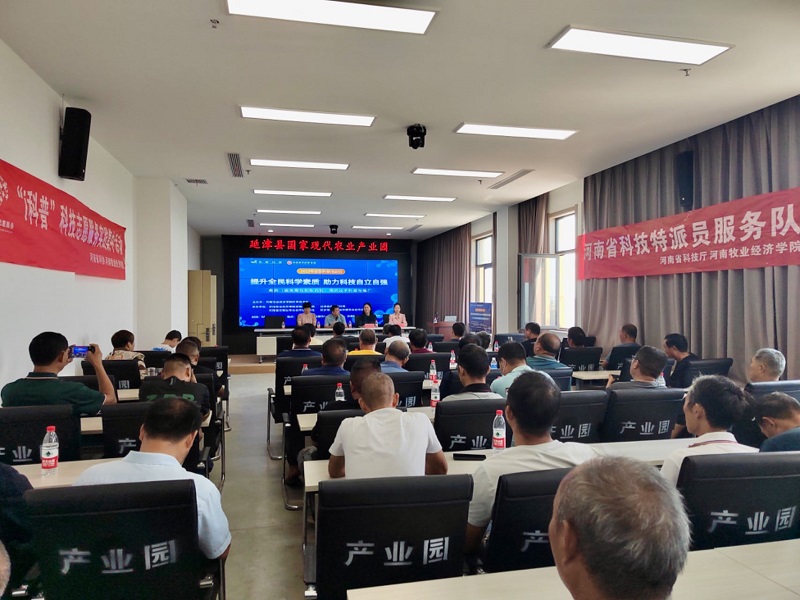 2023年9月16日,围绕“提升全民科学素质,助力科技自立自强”主题,校高教研究所张春辉科长(河南省首席科普专家),与动物医药学院省科技特派员黄慧,及河南省动物疫病预防与控制中心高级兽医师王英华一同,在新乡市延津县开展了立足面向基层、服务发展、惠及群众的科普培训活动,参会人员主要有该县农业农村局的部分工作人员和60余名养殖技术人员。