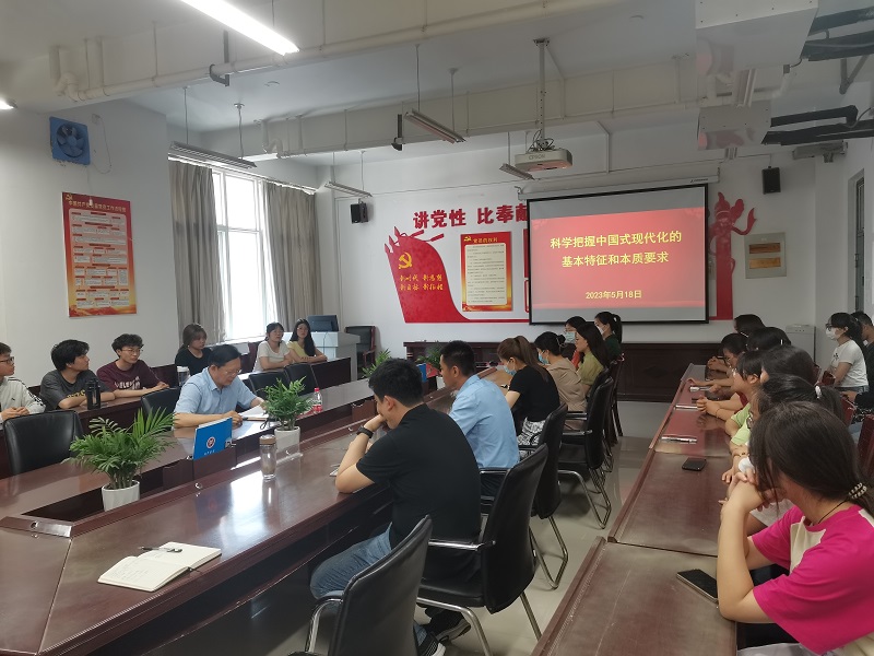校党委副书记李俊杰以《科学把握中国式现代化的基本特征和本质要求》为题,结合学习体会和实际工作,从“中国式现代化的基本特征”、“中国式现代化的本质要求”和“高等教育如何实现现代化”三个方面深入浅出的分析了中国式现代化五个方面的基本特征,阐释了中国式现代化的核心要义,带领大家深刻把握了高等教育现代化的两大着力点。李俊杰书记指出,党的理论创新每前进一步,理论武装就要跟进一步。在全党深入开展学习贯彻习近平新时代中国特色社会主义思想主题教育,是贯彻落实党的二十大精神的重大举措。党的二十大以来,习近平总书记围绕中国式现代化提出了一系列新思想新论断新观点,深刻回答了强国复兴之路朝哪走、怎么走的根本问题。李书记李书记强调,中国式现代化既是一个目标,也是一个过程,是需要我们这一代人和下一代人接续奋斗的国家命题。新时代青年大学生应积极参与到中国式现代化的伟大实践中,一是要把握好习近平新时代中国特色社会主义思想的世界观和方法论;二是要成为中国梦的筑梦人和逐梦人;三是要在奋斗中孜孜求索。整场党课主题鲜明,内容丰富,见解独到,参与学习的师生意犹未尽、深受启发。