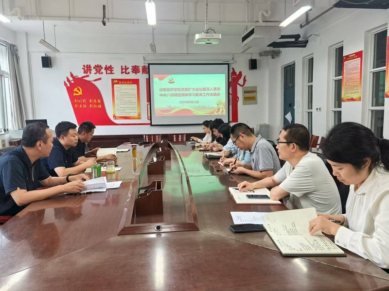 9月15日,动物医药学院在善知楼C401会议室召开党委扩大会议暨深入贯彻中央八项规定精神学习教育总结会,会议由学院党委书记胡卫东主持,学院党委委员及各支部书记参会。