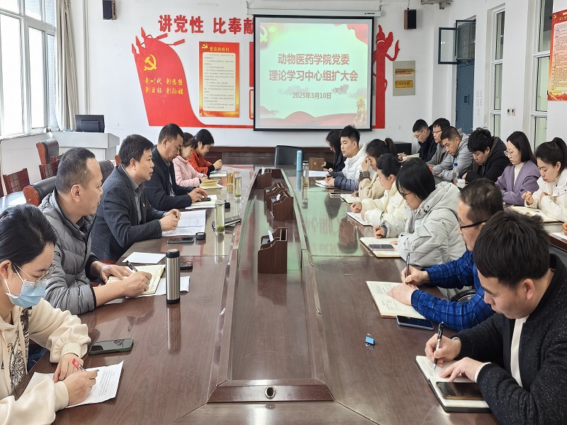 3月10日下午,动物医药学院在善知楼C401会议室召开党委理论学习中心组(扩大)学习会,深入传达学习学校第二次党员代表大会精神。学院班子成员、科级以上干部、各党支部书记及辅导员参会。