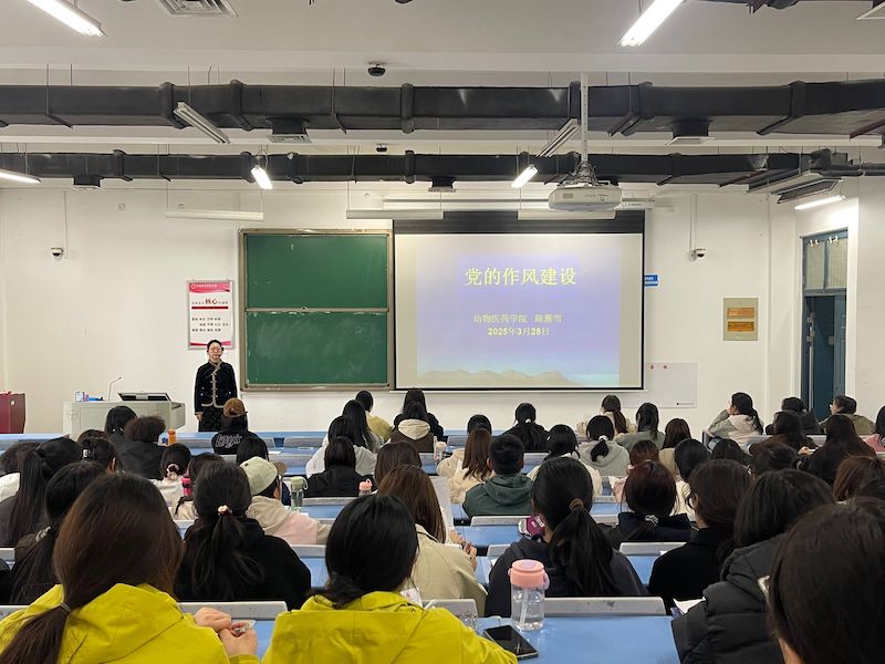 为加深入党积极分子对党的作风建设的了解,确保学生在正式入党前具有正确的思想基础,扣好入党的“第一粒扣子”,2025年3月28日中午,动物医药学院入党积极分子培训课程第五讲《党的作风建设》于1号教学楼合201教室开讲。本次党课由动物医药学院团委副书记陈雁雪主讲,本期115名入党积极分子参加培训。