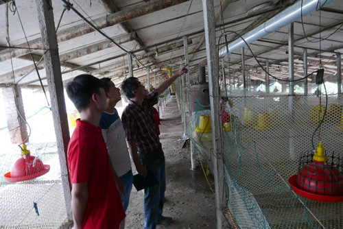 王岩老师现场指导养殖户清扫鸡舍卫生
