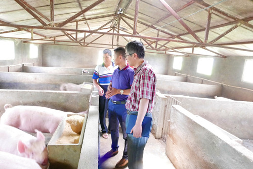 两位老师深入猪舍现场指导