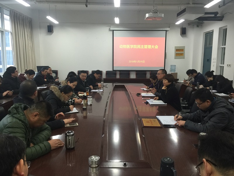2018年1月19日上午,动物医学院在生工组团C401会议室成功召开2017年度教职工民主管理大会,学院党政领导及全院教职工参加大会。会议由党总支副书记、分工会委员张瑞春主持。