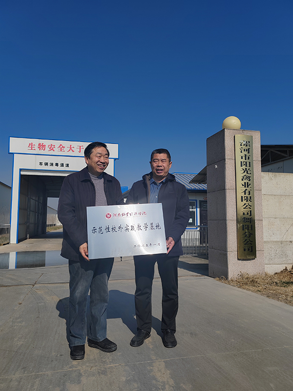 2025年1月19日,副校长边传周带队赴漯河阳光禽业进行调研考察,与企业开展访企拓岗、交流洽谈,看望实习生,并为企业授予“示范性实践教学基地”牌匾。动物医药学院副院长汤法银和省产业体系替抗岗位专家乔宏兴等参加了上述活动。