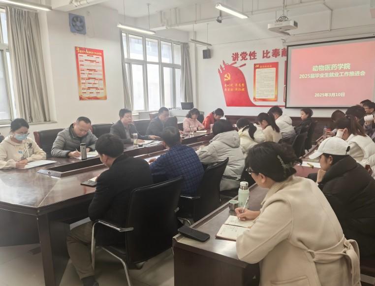 3月10日下午,动物医药学院党委书记胡卫东在院会议室主持召开了2025届毕业生就业工作推进会。院领导班子、科级以上干部、教研室主任、支部书记及毕业班辅导员参会。