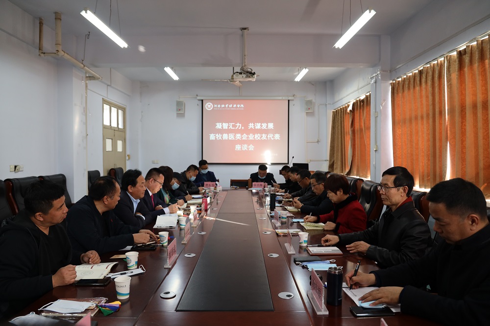 12月3日,动物医药学院于北林校区创业孵化园401会议室举行畜牧兽医类企业校友代表座谈会。校就业创业指导服务中心主任卢有峰、校友办主任王春明、动物医药学院党委书记刘永录、动物科技学院党委书记王建伟、校友办副主任王胜果、动物医药学院副院长汤法银、与郑州君聚商贸有限公司总经理段文斗等18位优秀校友代表共同参加座谈会,座谈会由动物医药学院副院长吴玉臣主持。